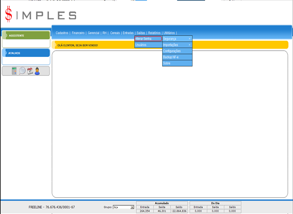 Para acessar a Tela de Alteração de senha é preciso ir ao Menu “Utilitários-Segurança-Alterar Senha”.