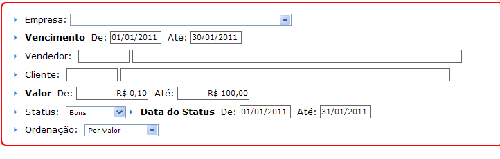 Depois de feito isto, aparecerá algumas opções de filtro, como na figura abaixo: