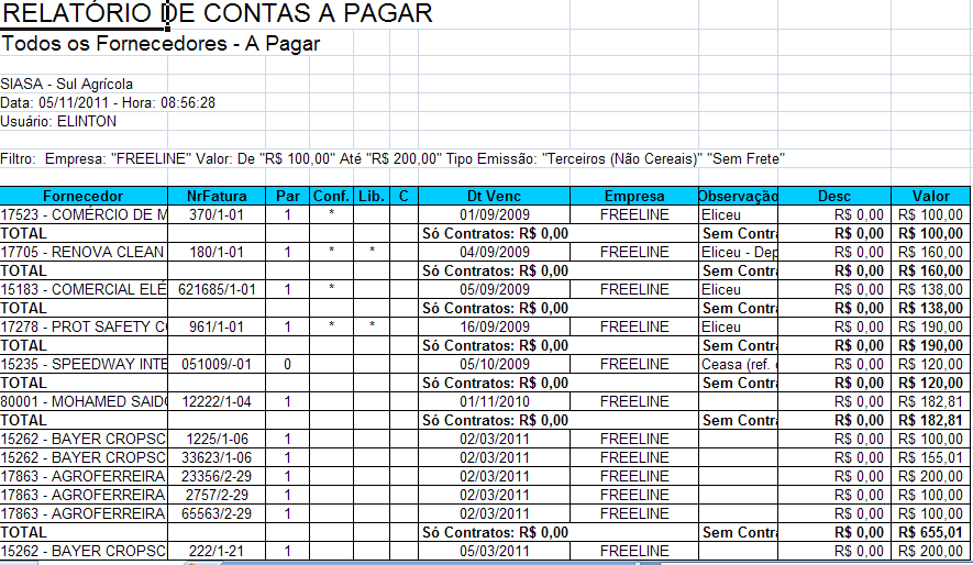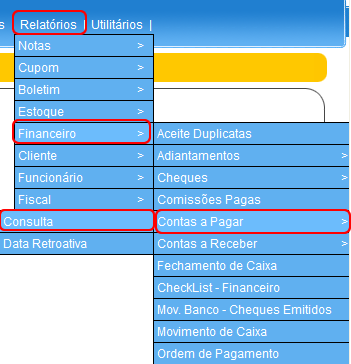 Para acessar este relatório é preciso ir ao Menu “ Relatórios-Financeiro-Contas a Pagar-Consulta”.