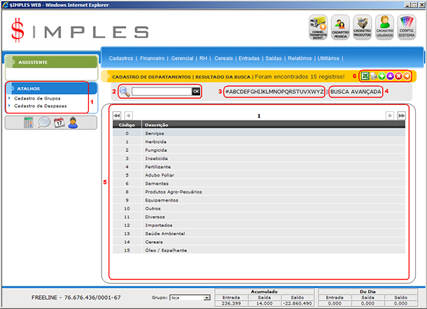 - Grade de Departamentos: Mostra todos os Departamentos conforme os filtros descritos anteriormente.