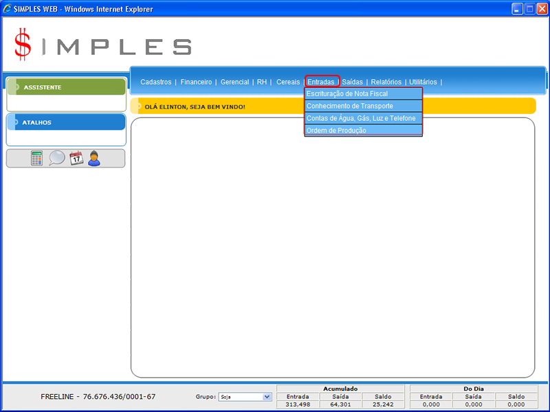 O menu Saídas agrega todos os cadastros referentes às documentos de entrada.