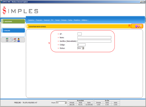 - Para Incluir um novo Estado, o usuário deve clicar sobre o ícone de incluir no navegador. Ao preencher os campos, o usuário deve clicar no botão Incluir.