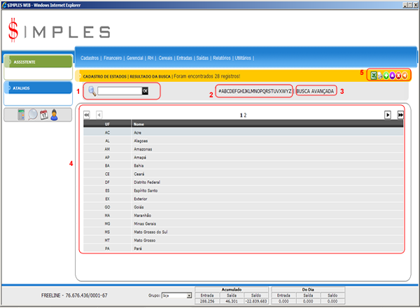 A tela de Estados possui três elementos principais que executam funções distintas, conforme seguem: