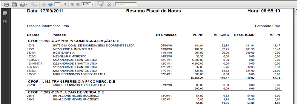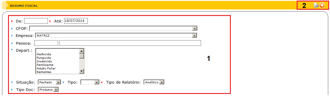 Para acessar este relatório é preciso ir ao Menu “ Relatórios-Notas/Cupons-Impostos-Resumo Fiscal”.