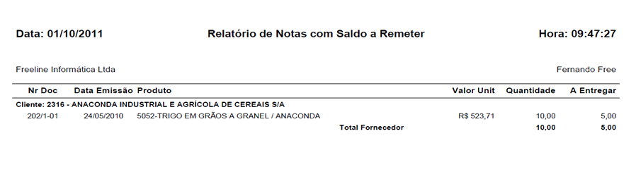 Para acessar este relatório é preciso ir ao Menu “ Relatórios-Notas/Cupons-Saldos-Saldo a Remeter”.