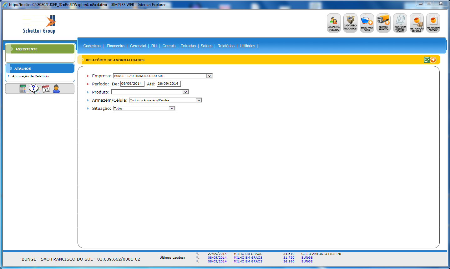 Para acessar a Relação de Anornalidades, use o Menu “Relatórios – Análise – Rel. Relação de Anornalidades”.