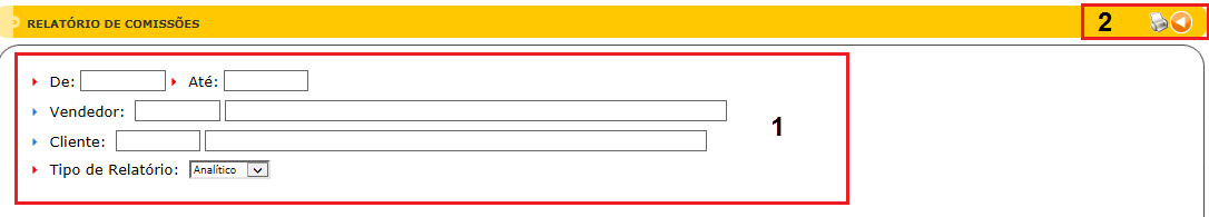 A tela de Comissão - Pagamentos - quatro elementos principais que executam funções distintas, conforme seguem: