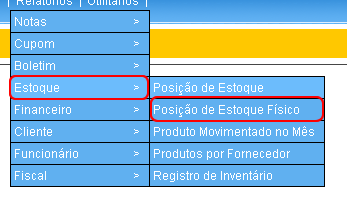 Para acessar este relatório é preciso ir ao Menu “ Relatórios-Estoque-Posicao de Estoque Fisica”.