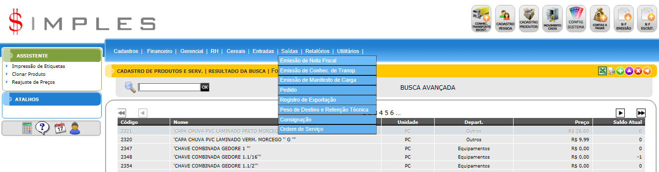 O menu Saídas agrega todos os cadastros referentes às documentos de saída.