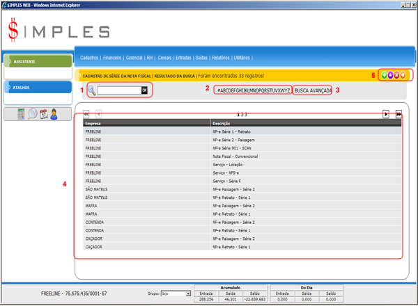 - Grade de Séries de NF: Mostra todos as Séries de NF conforme os filtros descritos anteriormente.