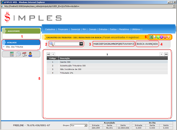 - Busca Avançada: Permite fazer uma busca avançada de Tributos do ISS com base em todos os campos da tabela.